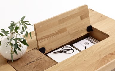 Verkaufen unseren neuwertigen couchtisch aus schön gemaserter und geölter wildeiche (massiv) mit ablage. Massivhölzer für korpus und front. Die tischplatte aus soft gebürsteter wildeiche, deren rustikaler charakter mit markanter maserung begeistert, bereichert das ambiente. Couchtisch aus eiche massiv mit schubladen kaufen.