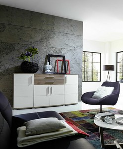 Sideboard jam in weiß struktur und silbereiche.