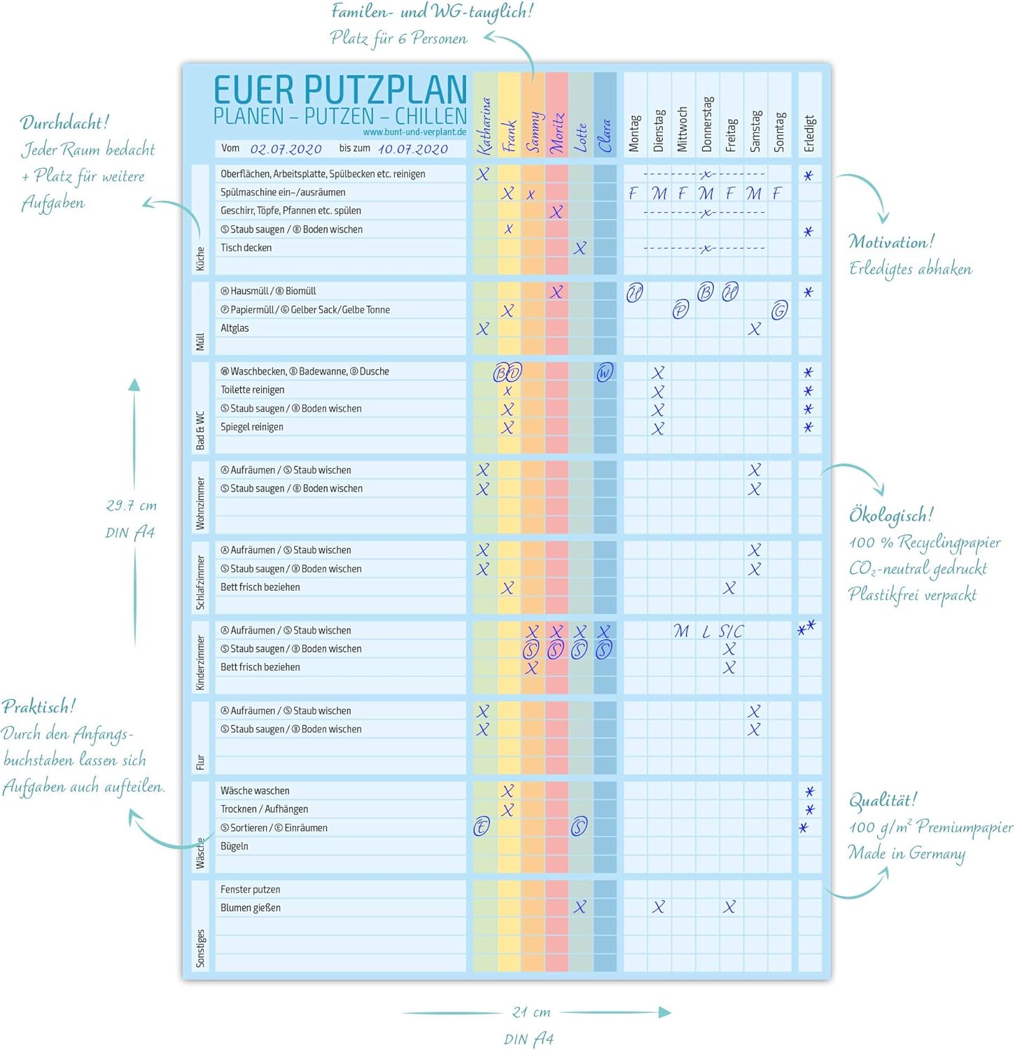 Putzplan It schedules the periodic tasks occuring in a flat based on defined conditions and assigns them to predefined people. Die absolute notwendigkeit in jeder wg! Putzplan, den haushalt mit system organisieren. Klingt super langweilig und mega spießig, ist aber die beste idee die ich je zum thema putzen hatte. A4 putzplan block mint putzplaner 50 blatt bis 8 personen wochenplaner familie.